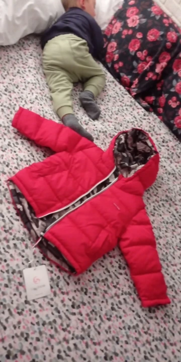 Посылка шла до Харькова ровно месяц. Пришла вместе с другими вещами с али бесплатно Новой почтой. Курточка классная, подойдёт и для зимы, если тепло пододеть. Брала размер 5Т (на куртке написано 120). Ребёнку 4 года, носит размер 110. Как раз длинненькая, рукава с запасом. Удобно, что двухсторонняя. Красивая и стильная)