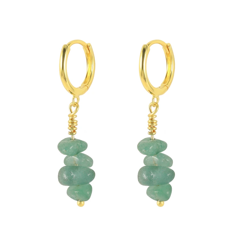 Женские серьги-кольца из серебра 925 пробы с натуральным камнем