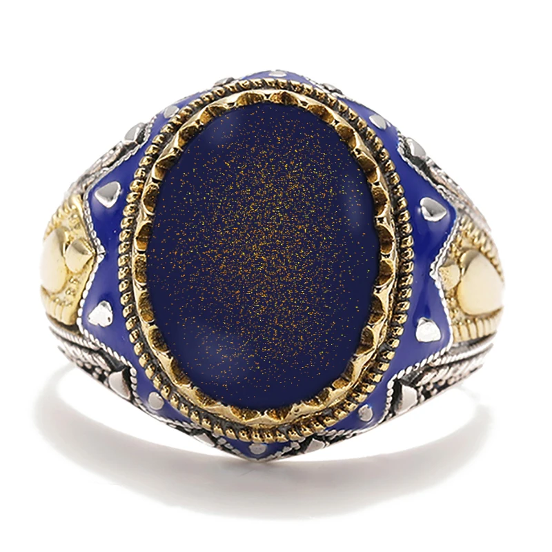 Классические эмалированные позолоченные кольца с синим цирконием для мужчин, модные очаровательные ювелирные изделия g...
