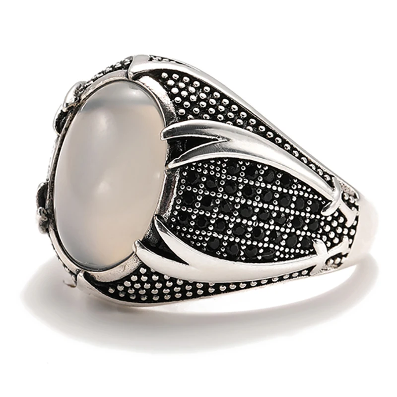 Мужские кольца в стиле ретро с овальным белым цирконием, Повседневные Вечерние Простые Модные ювелирные изделия