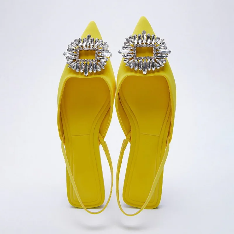 Женские туфли с острым носком, светло-желтые туфли со стразами и за...
