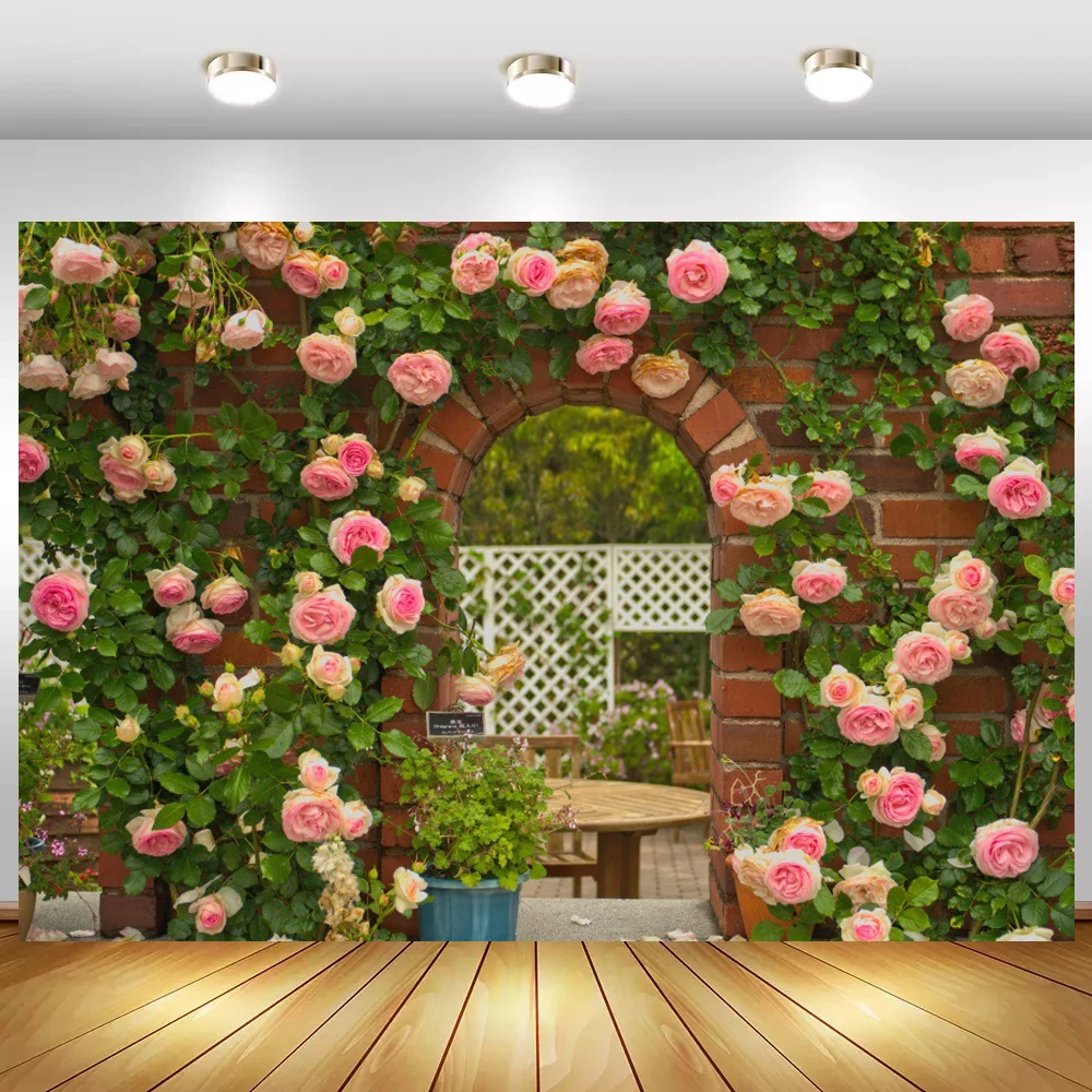 Фон для фотосъемки с изображением красной кирпичной стены, изогнутой двери, 3D розы, свадебный фон, фотография для студийной детской портретной фотосъемки