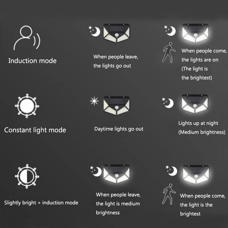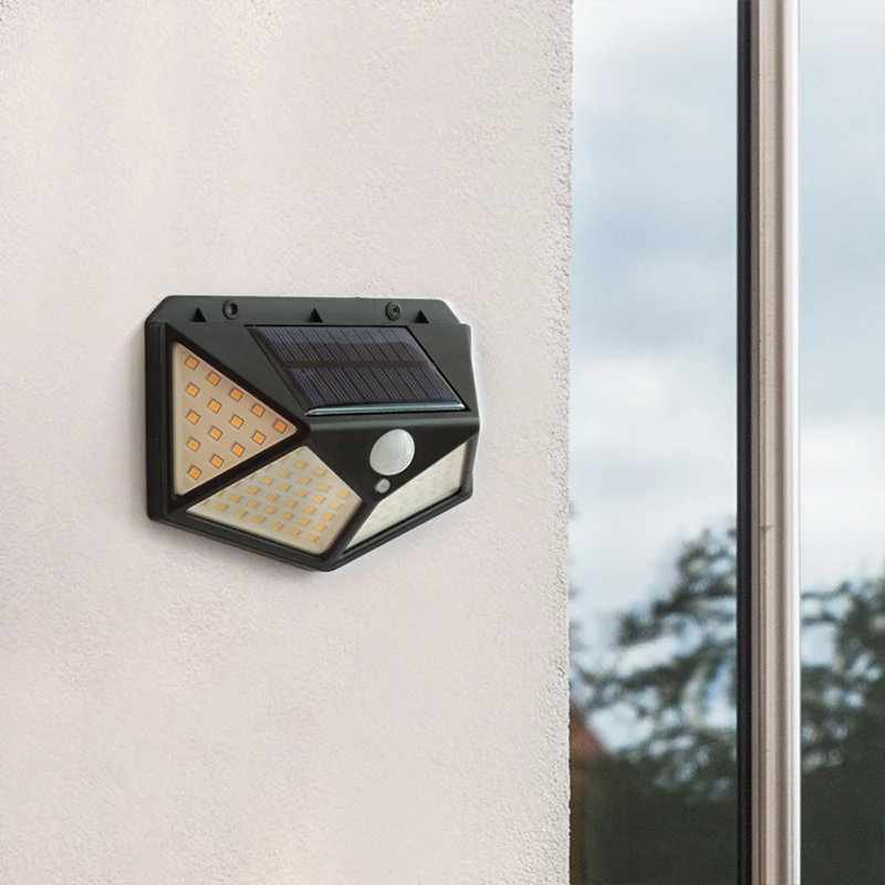 100 светодиодный солнечный свет ИК датчик движения Открытый водонепроницаемый Солнечный питание три стороны освещение Настенный светильник вилла сад украшение лампы