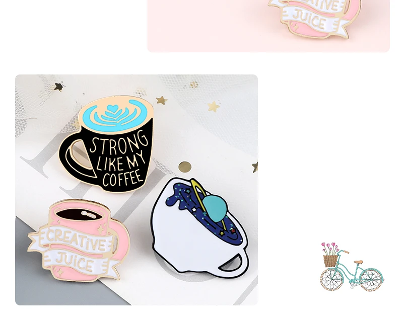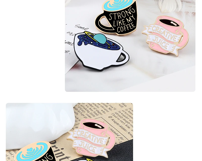 Броши с изображением кофейных чашек, оригинальная эмалированная булавка с изображением планеты, металлический значок на заказ для сумки, джинсовые булавки на лацкан, модное ювелирное изделие, подарок для друзей