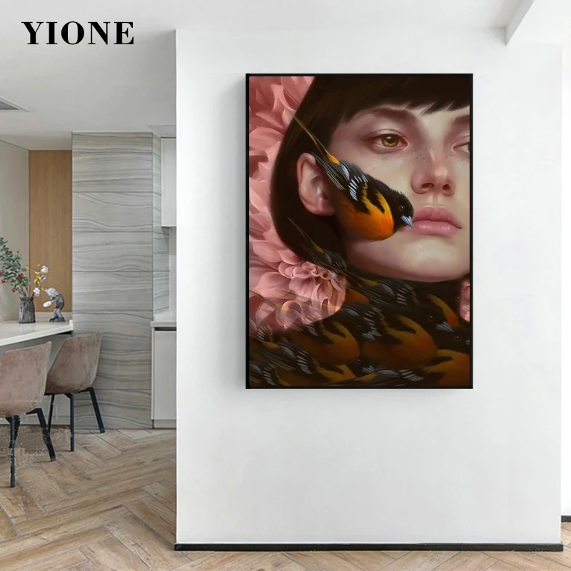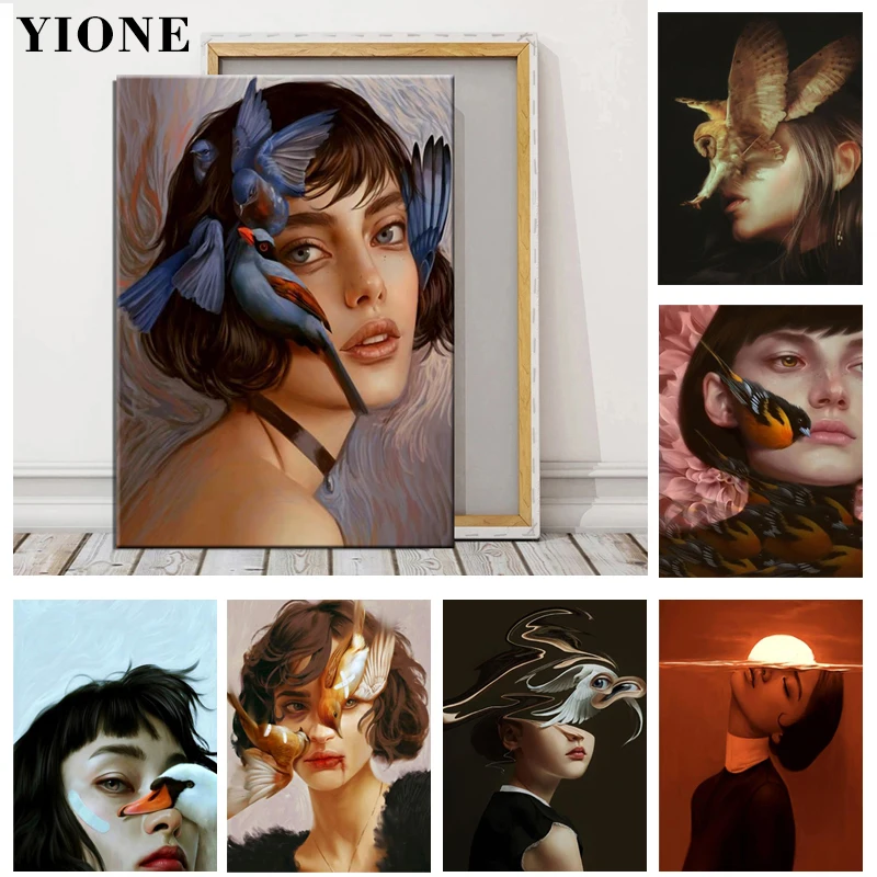 Абстрактная картина маслом на холсте с изображением женщины, девушки-птицы, для украшения гостиной, художественные плакаты и принты