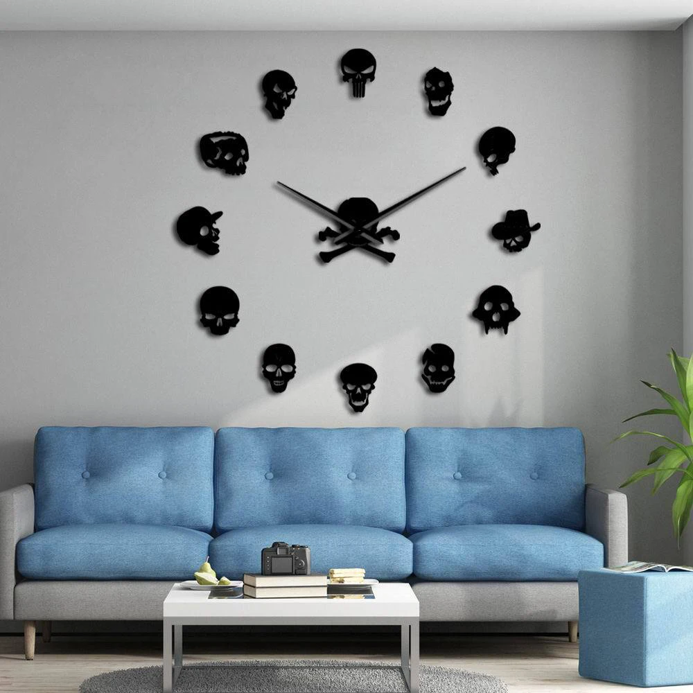 Настенные гигантские часы с черепами, большие бескаркасные настенны...