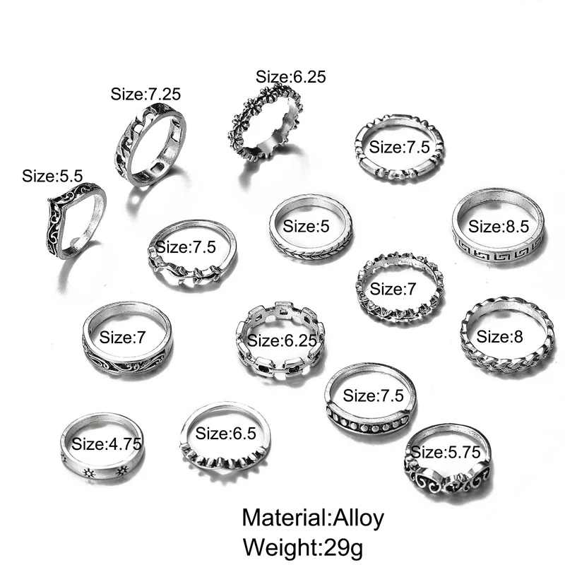 Комплект колец в готическом стиле для женщин и девушек, открытый ге...
