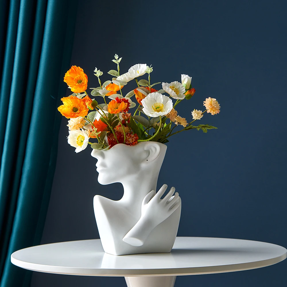 Современная ваза, скульптура, абстрактное искусство, модель лица, аксессуары для украшения дома, украшение для гостиной, настольные цветочные вазы, статуя, подарки