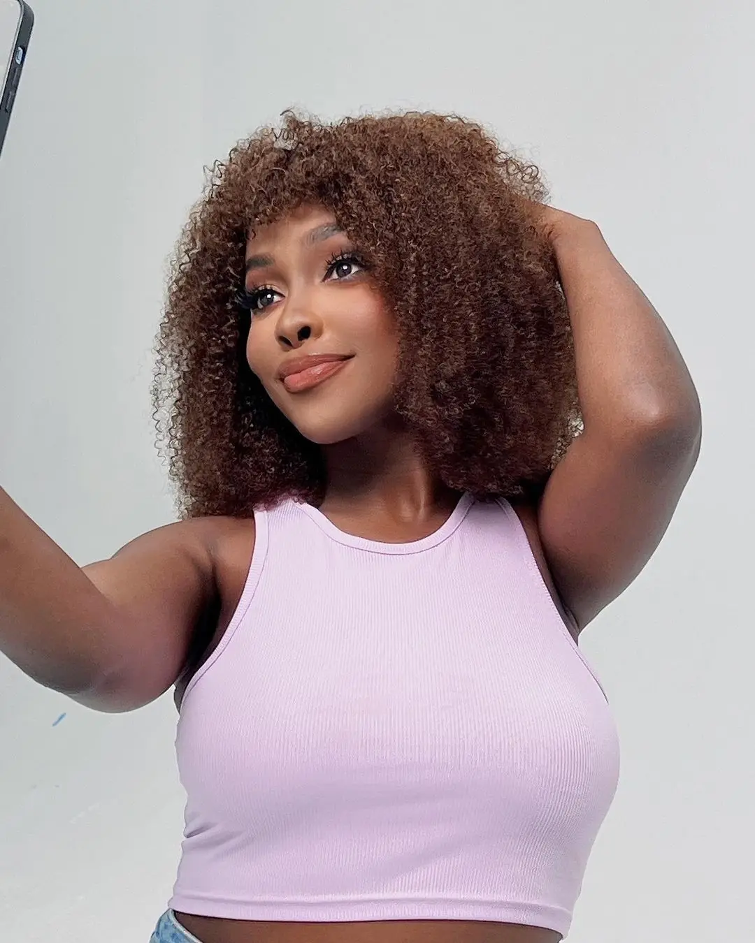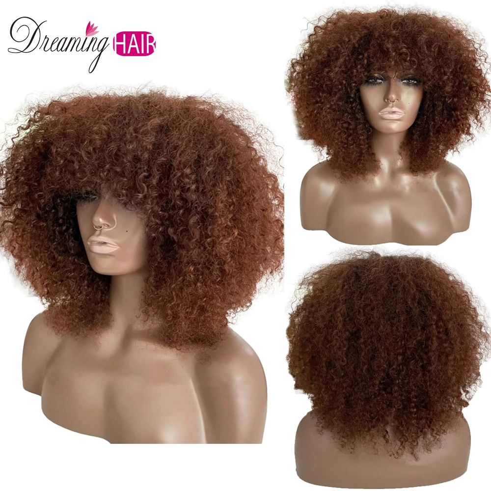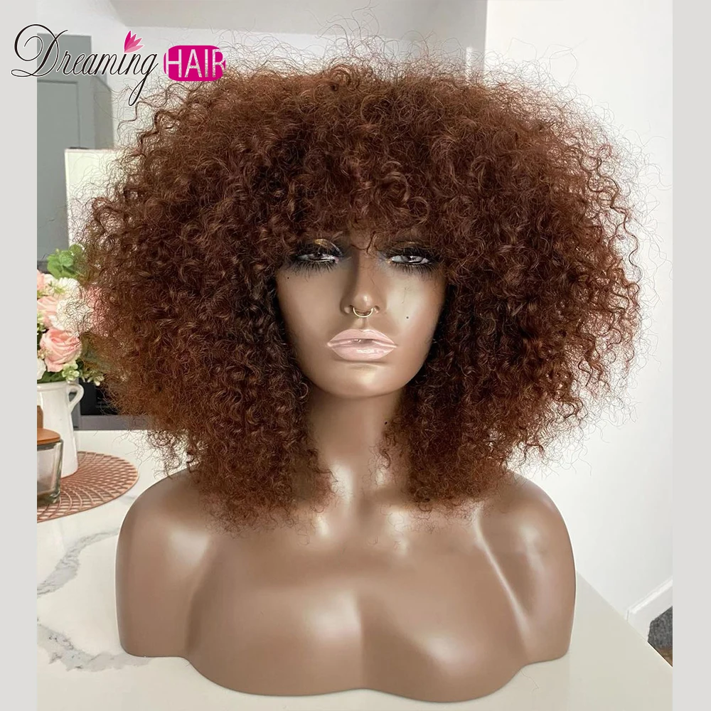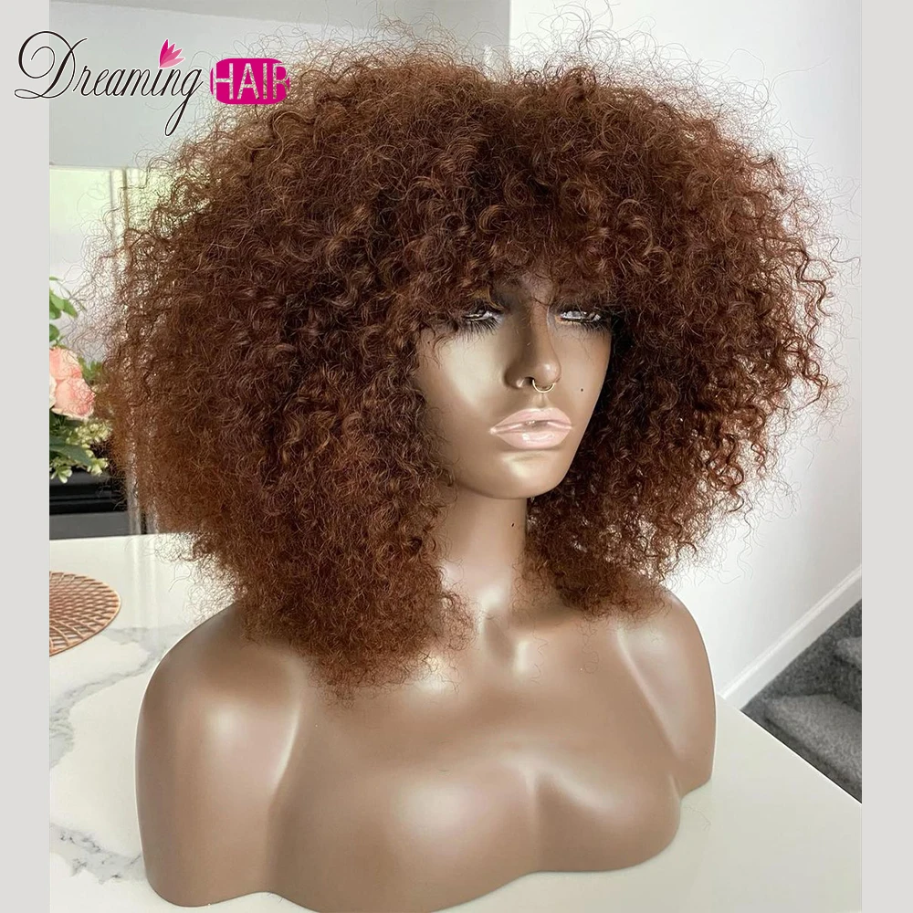 Афро Боб вьющиеся человеческие волосы парики с челкой полностью машинное изготовление короткие парики коричневого цвета хайлайтер Омбре блонд для женщин 180%