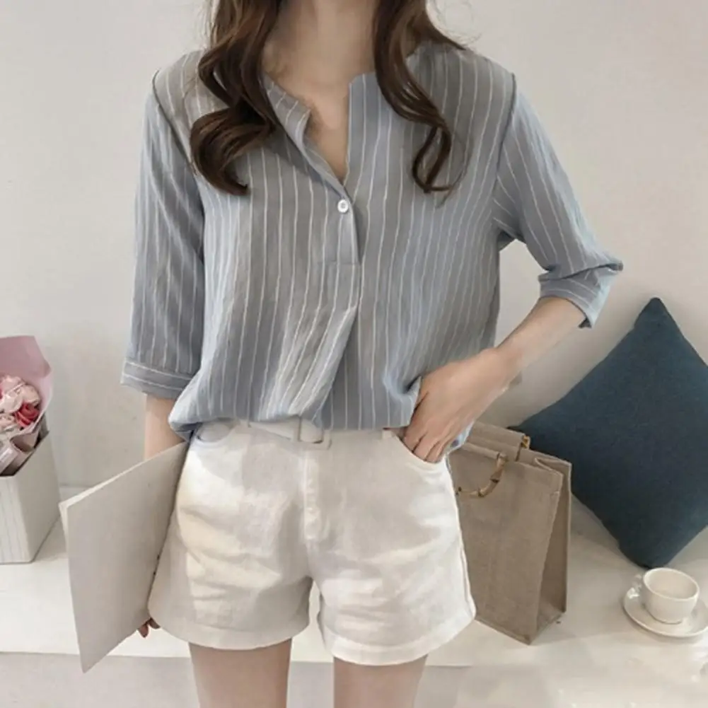 Рубашка с круглым вырезом и рукавом 3/4 очень Повседневная и универсальная. И его можно сочетать с джинсами, юбками, шортами, брюками из искусственной кожи и т. д.