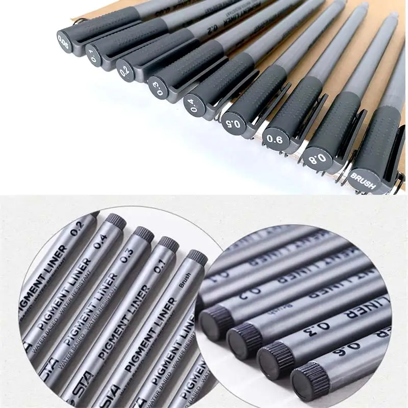 359 шт. пигментный лайнер, художественные маркеры, иглы, ручки, водонепроницаемая кисть, ручка, черный тонкий наконечник, студенческие эскизы