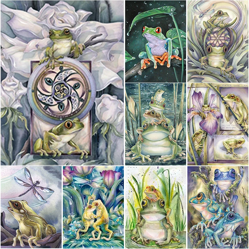 5D алмазная живопись сделай сам, лягушка, алмазная вышивка, лотос, животное, вышивка крестиком, квадратная, круглая, ручная работа, подарок, домашний декор