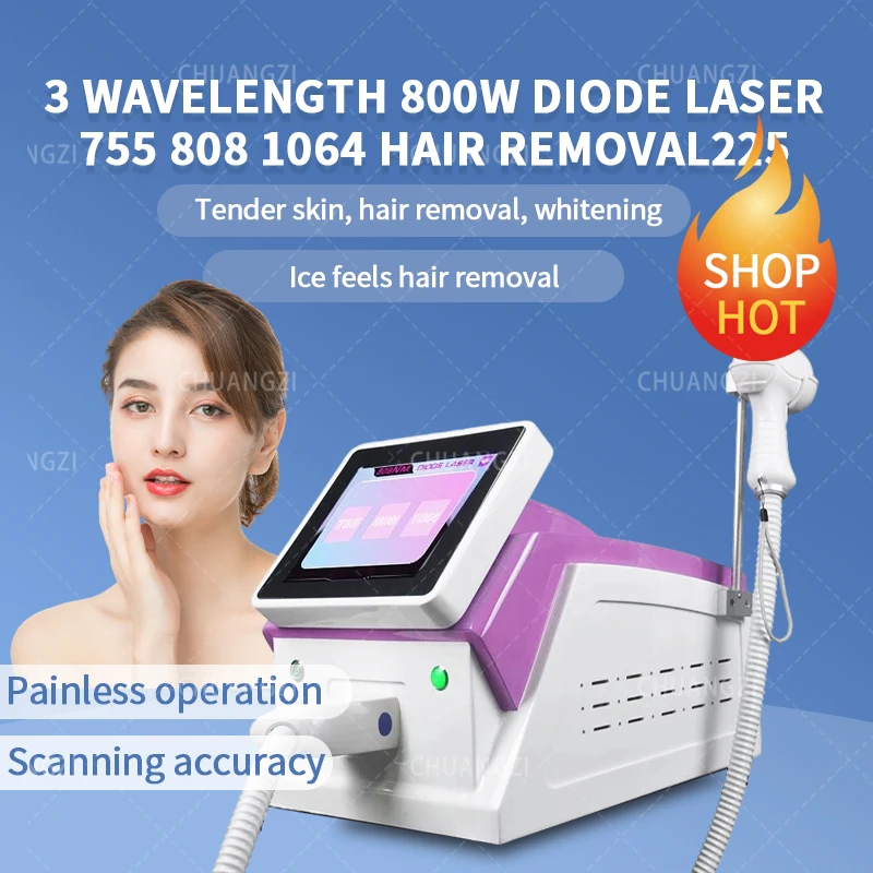 Новейший продукт, диодный лазер для удаления волос с 3 длинами волны 8087551064 нм, аппарат для легкого удаления волос, омоложение кожи с CE