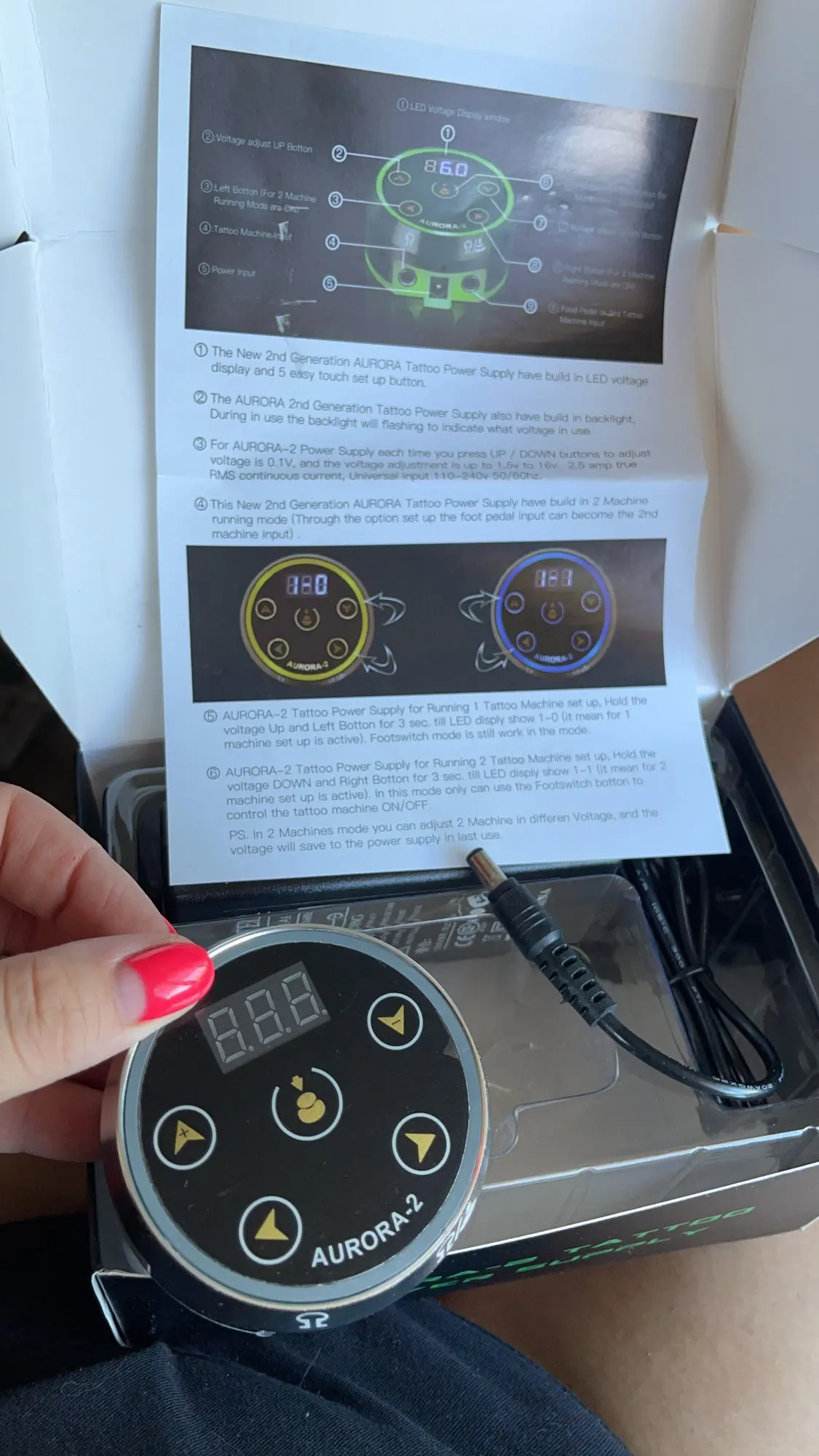 Блок питания для светодиодных татуировок LICH Mini AURORA, fonte с адаптером для профессиональных катушек для макияжа и роторных тату-пистолетов