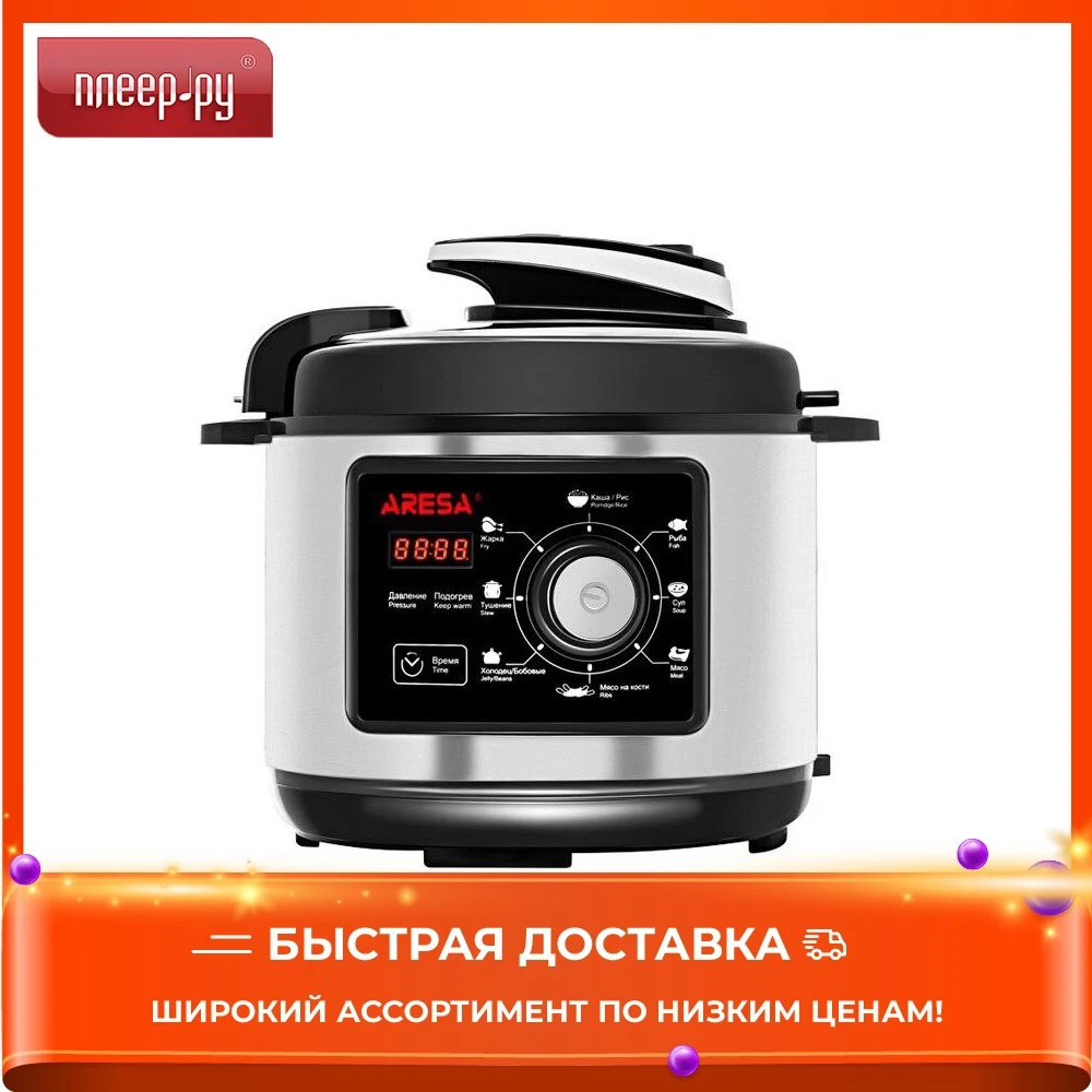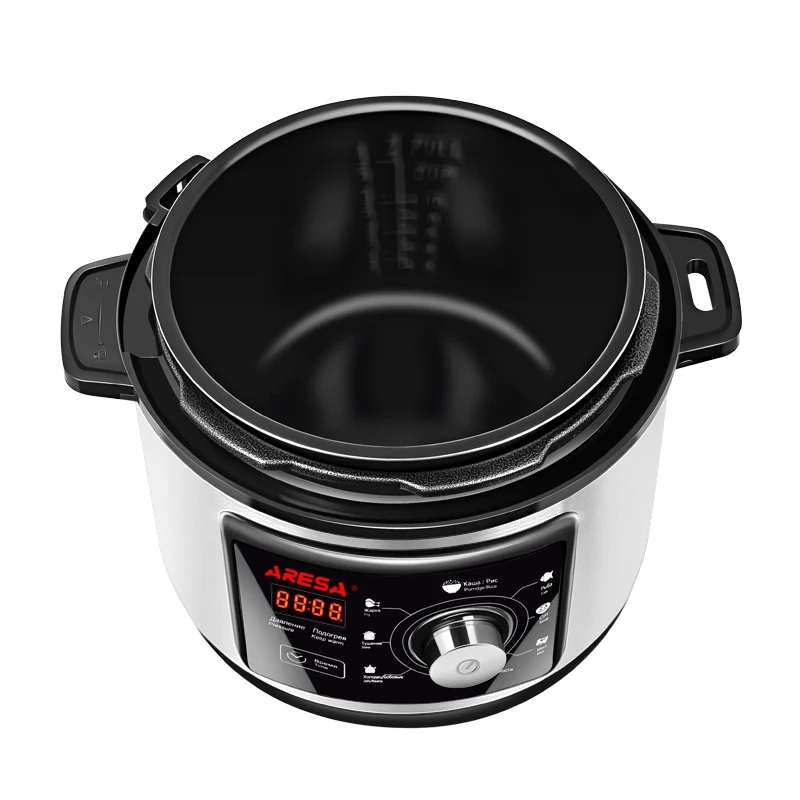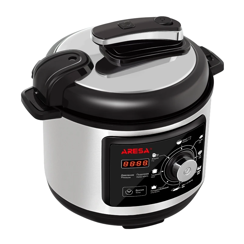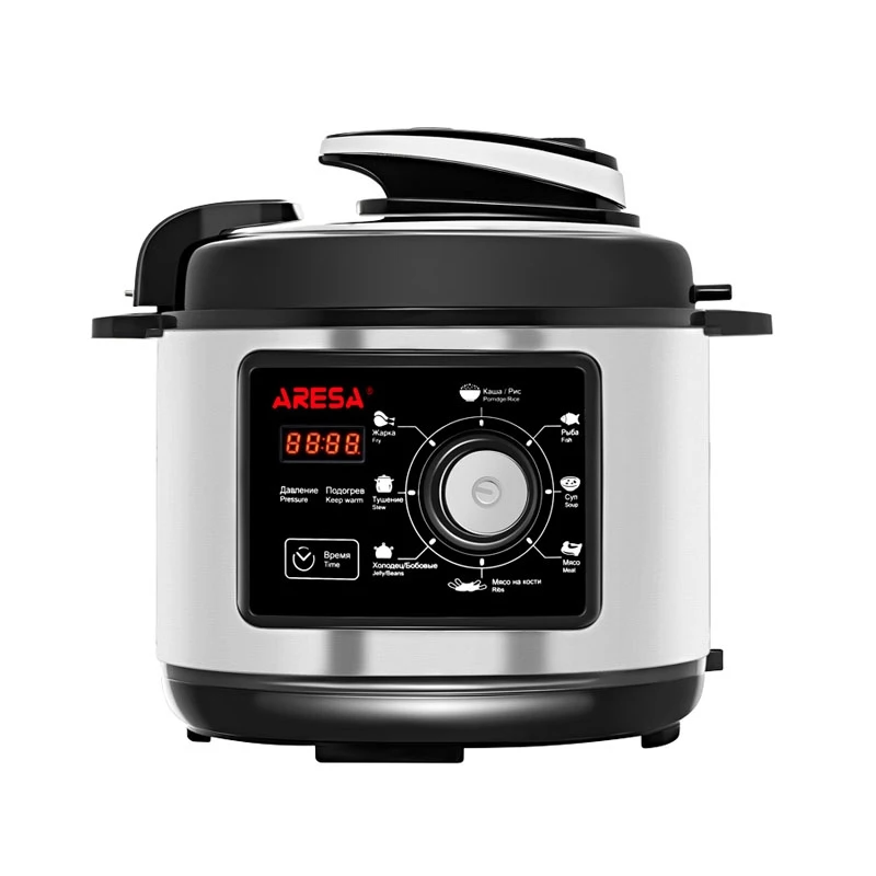 Мощность: 850-2100 Вт. Объём чаши: 5 л. Съёмная чаша с керамическим покрытием. 10 программ; Рис/Каша, Рыба, Суп, Мясо, Мясо на кости, Холодец/Бобовые, Тушение, Жарка. Функция "Подогрев". Функция отложенного старта.