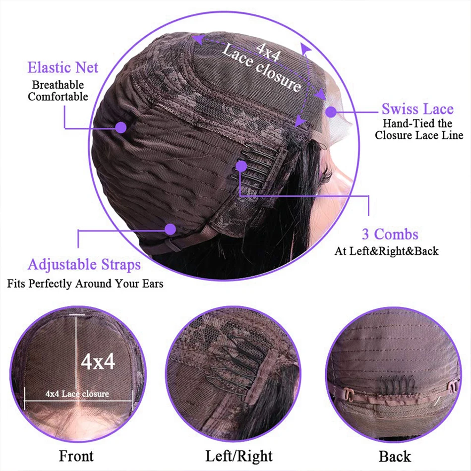 Тип парика4X4 Кружева Закрытие человеческих волос парики 13X4 Кружева Фронтальные человеческие волосы парикиМатериал для волос
