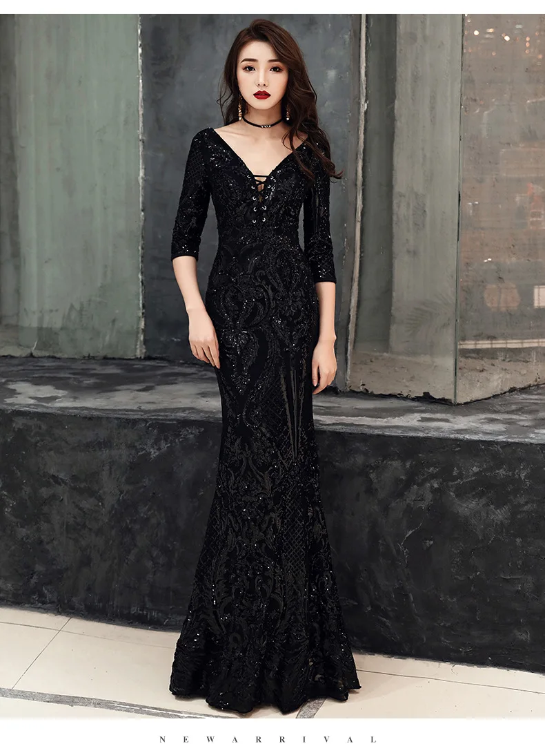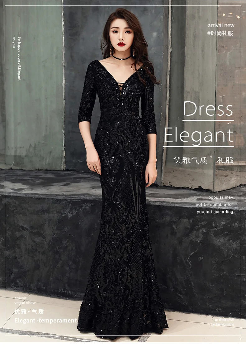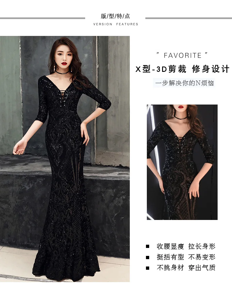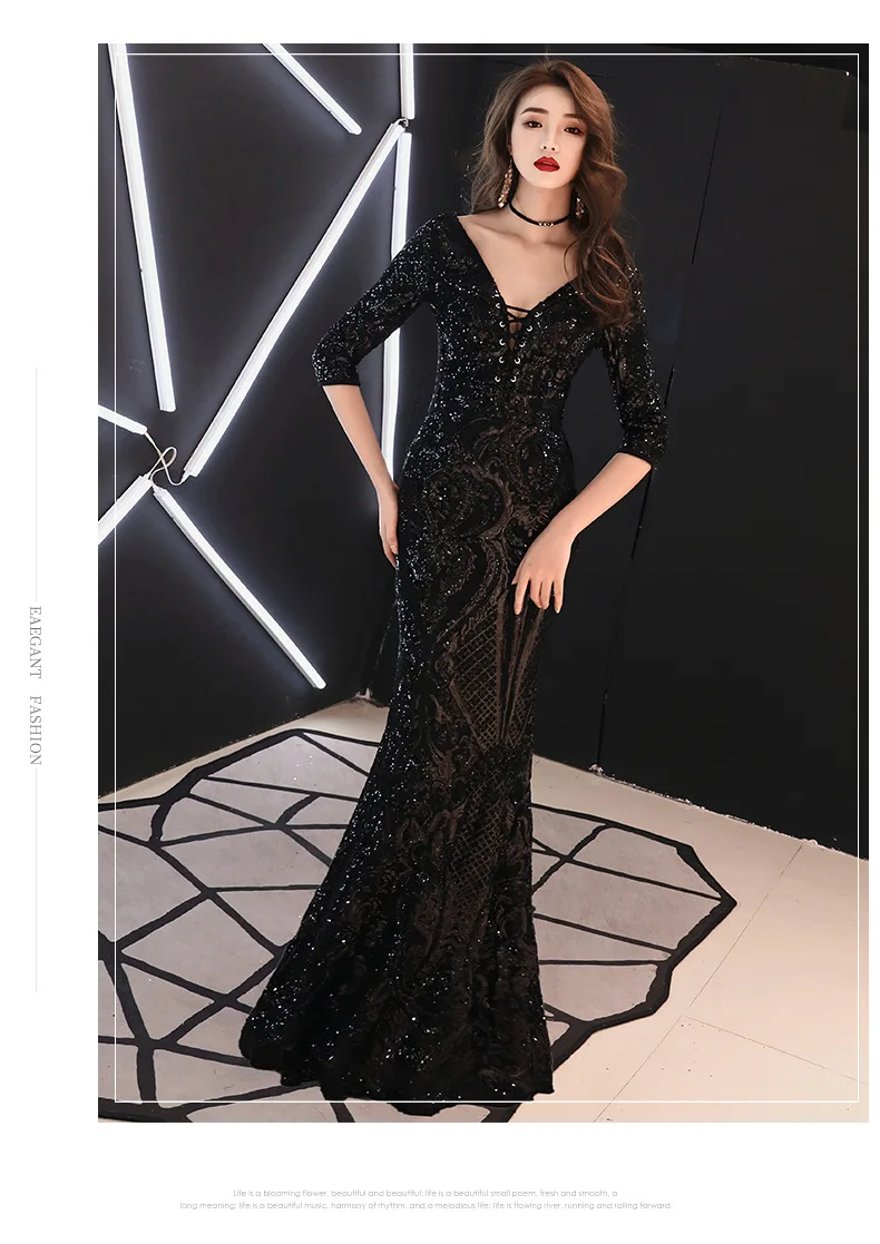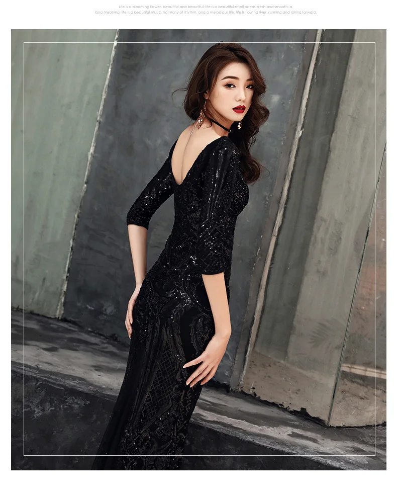Женское коктейльное платье, черное блестящее вечернее платье-Русалк...