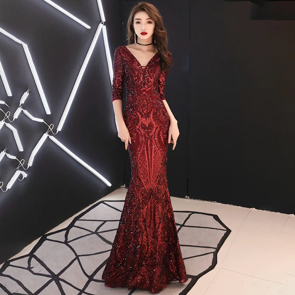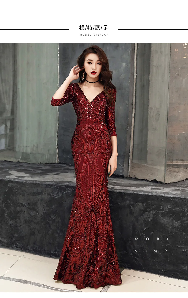 Женское вечернее платье с блестками, элегантное облегающее красное ...