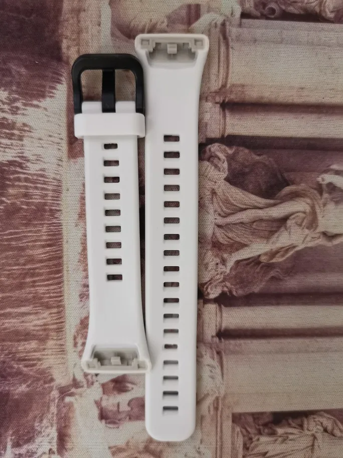 Как и фотографии, он идеально подходит для honor band 6, он несколько жестче оригинального ремешка, но все же удобен. Он не приносит вкладку, которая обычно приносит оригинал, чтобы колпачок не двигался и оставался прикрепленным к отверстиям ремешка, но это здорово.