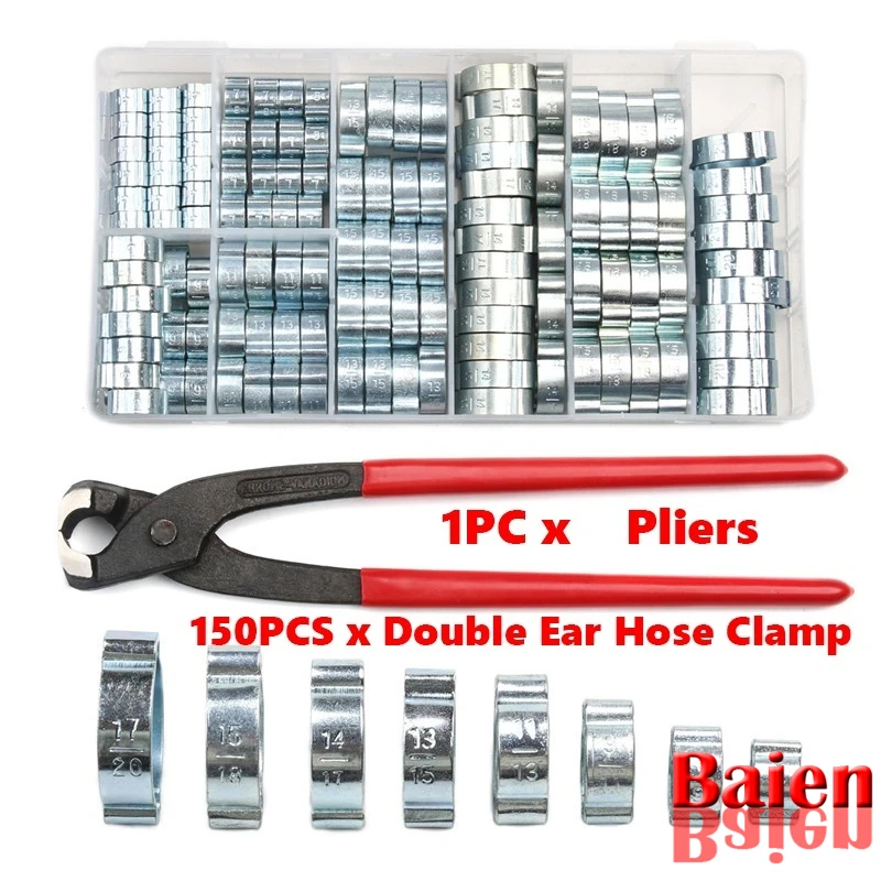 150 шт. 5-20 мм хомут для шланга, Двойной хомут для ушей, червячный...