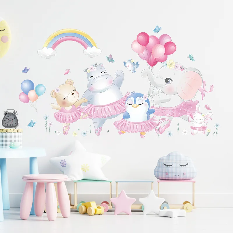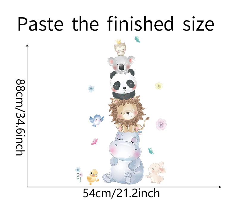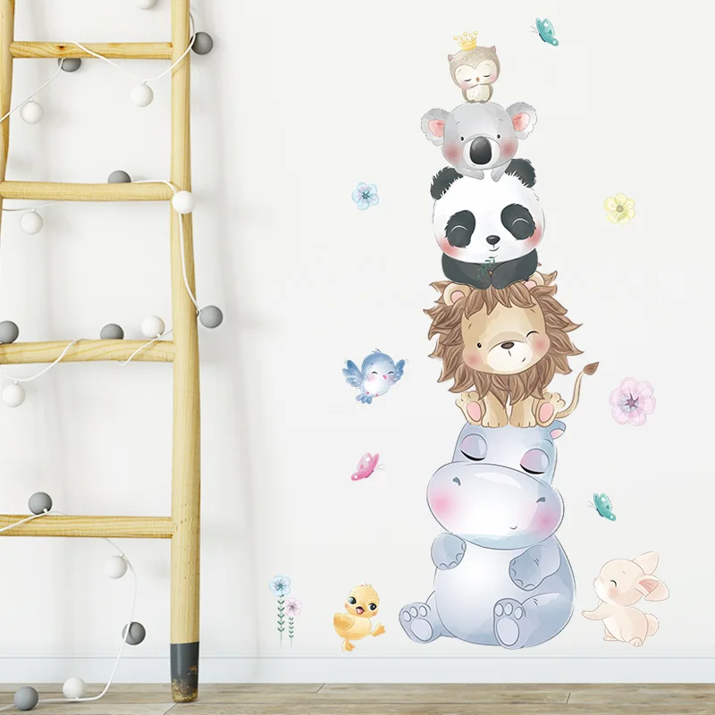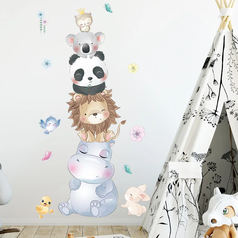 Кавайные животные из мультфильма наклейки на стену для украшения детской комнаты Бегемот, Лев, панда, спальни, аксессуары Настенный декор гостиной, наклейки