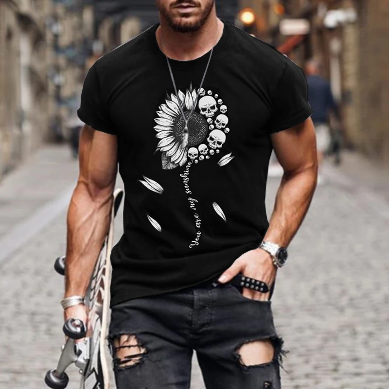Футболка мужская в стиле панк, с коротким рукавом и принтом, лето X...