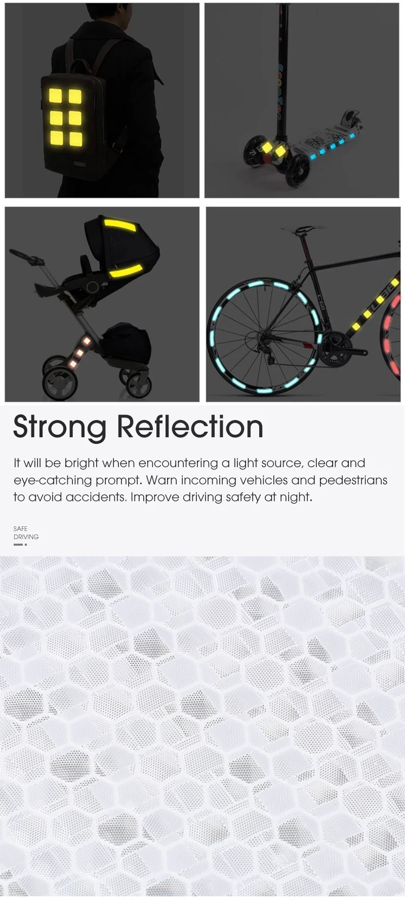 1. Прочная и не оставляющая следов светоотражающая лента, которая сохранит вас в безопасности во время дорожных путешествий.2. Идеально подходит для велосипедов, грузовиков, прицепов, лодок, автомобилей boby, почтовых ящиков, рюкзаков или шлемов RV's и camper/hiker.3. Улучшенная яркость светоотражающей видимости в ночное время для водителей, туристов, байкеров и ежедневных бегунов.4. Устойчивость к погодным условиям и влаге; Может выдерживать сильные падения, росы и не выцветать под солнцем.5. Может быть применен к большинству поверхностей и текстур, таких как металл, нейлон, пластик и хлопок.6. А также использовать в качестве предупредительного знака на дороге и ваших автомобилях, что может эффективно уменьшить случайность несчастных случаев.