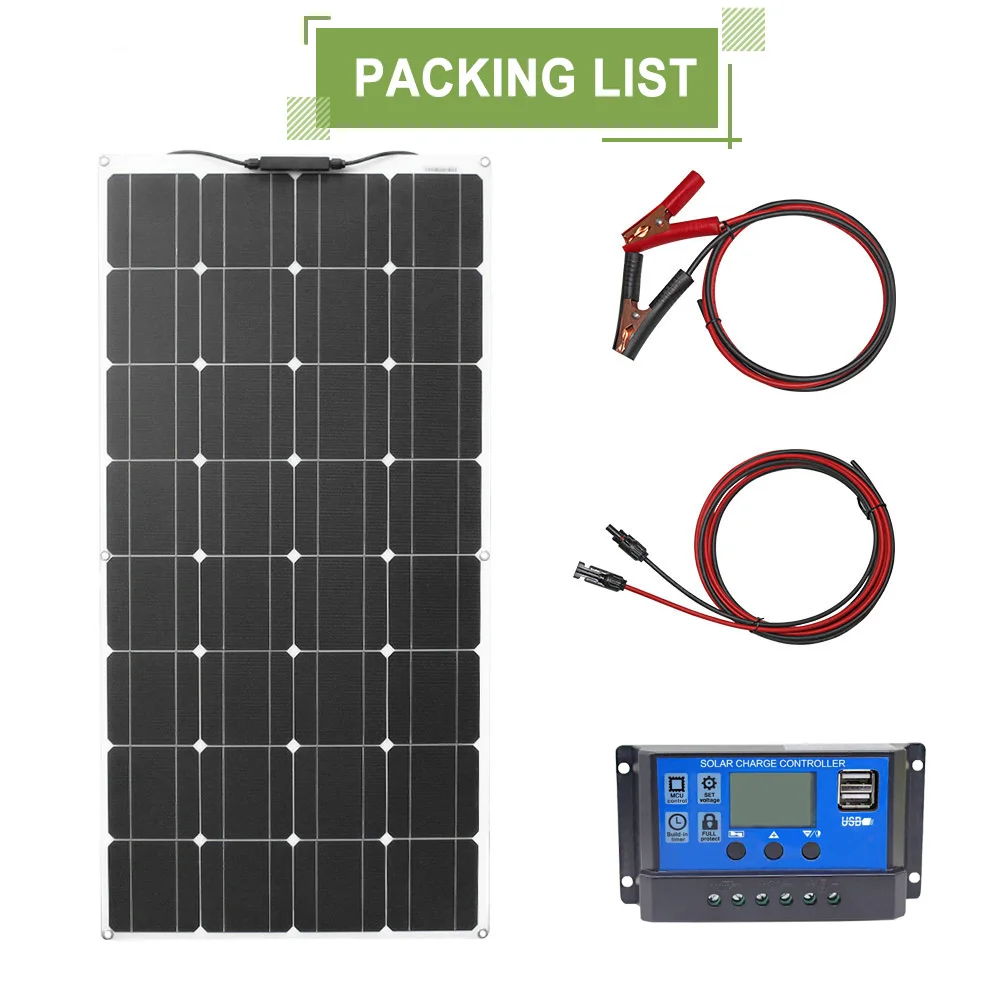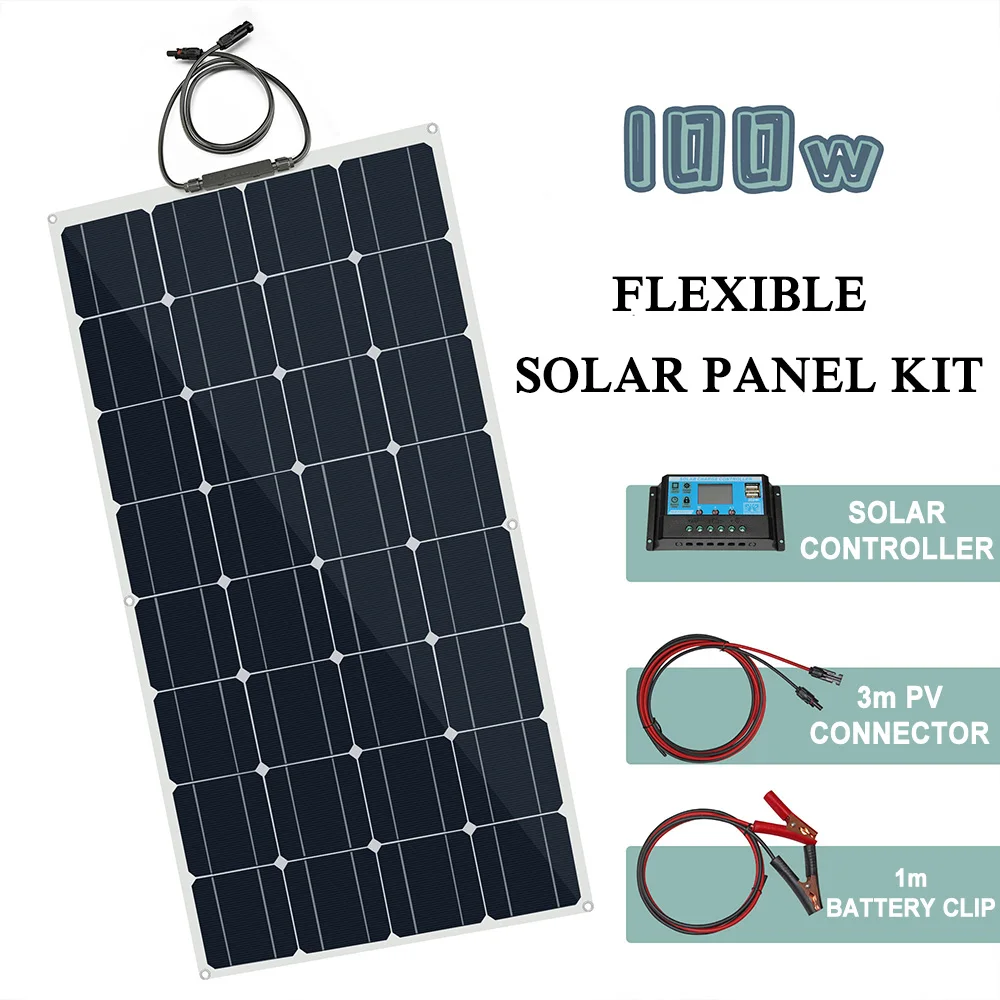 Комплект панелей солнечных батарей для фургона 100 Вт 12 В, гибкая китайская солнечная панель с солнечным контроллером 10 А