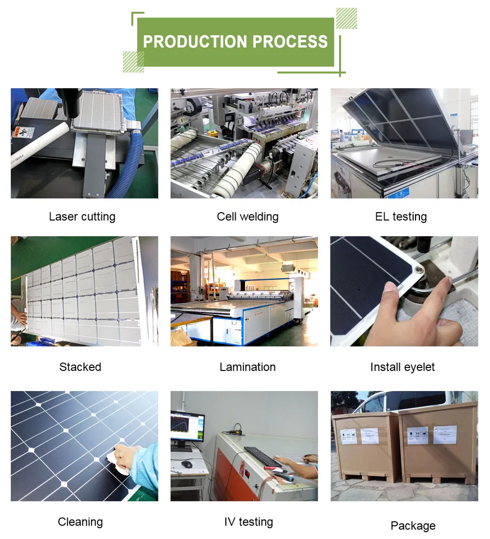 Гибкий комплект солнечной панели идет с вашим RV, он может питать ваш 12v/24v свинцово-кислотный аккумулятор, портативная электростанция. Наши солнечные панели оснащены из нержавеющей стали ушко. Задняя часть солнечных панелей плоская и гладкая. Вы можете зафиксировать солнечные панели на RV, крышу или окна с помощью клея или веревки.Преимущества