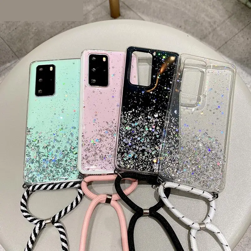 Блестящий Прозрачный чехол с ремешком через плечо для Huawei P20 P30 P40 Pro Mate 20 30 Honor 10i 10 i 9 Lite 8X, чехол с блестками и звездами
