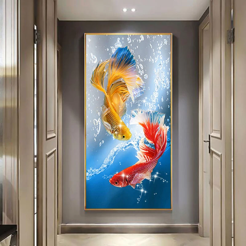Алмазная живопись, полная алмазная живопись, рыба, алмазная вышивка, koi ручная работа, сделай сам, точечные наклейки, алмазная вышивка бисером, вышивка крестиком