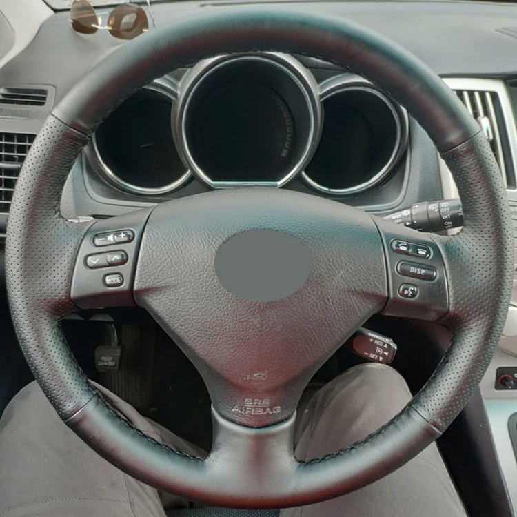 Черная кожаная накладка на руль-это приятное дополнение к уже черному интерьеру автомобиля.