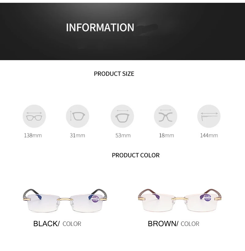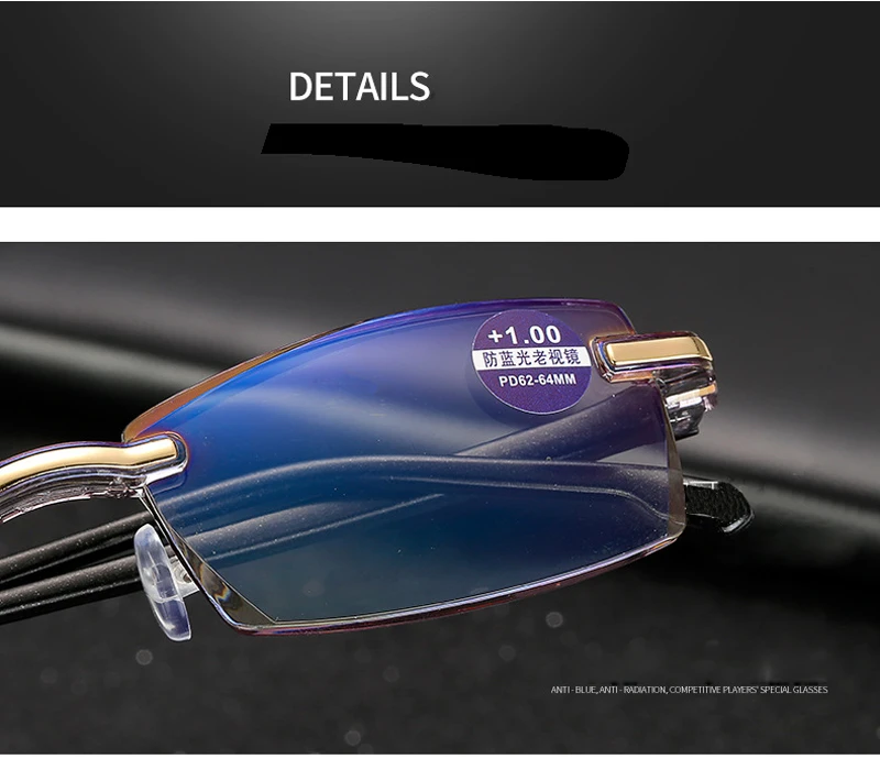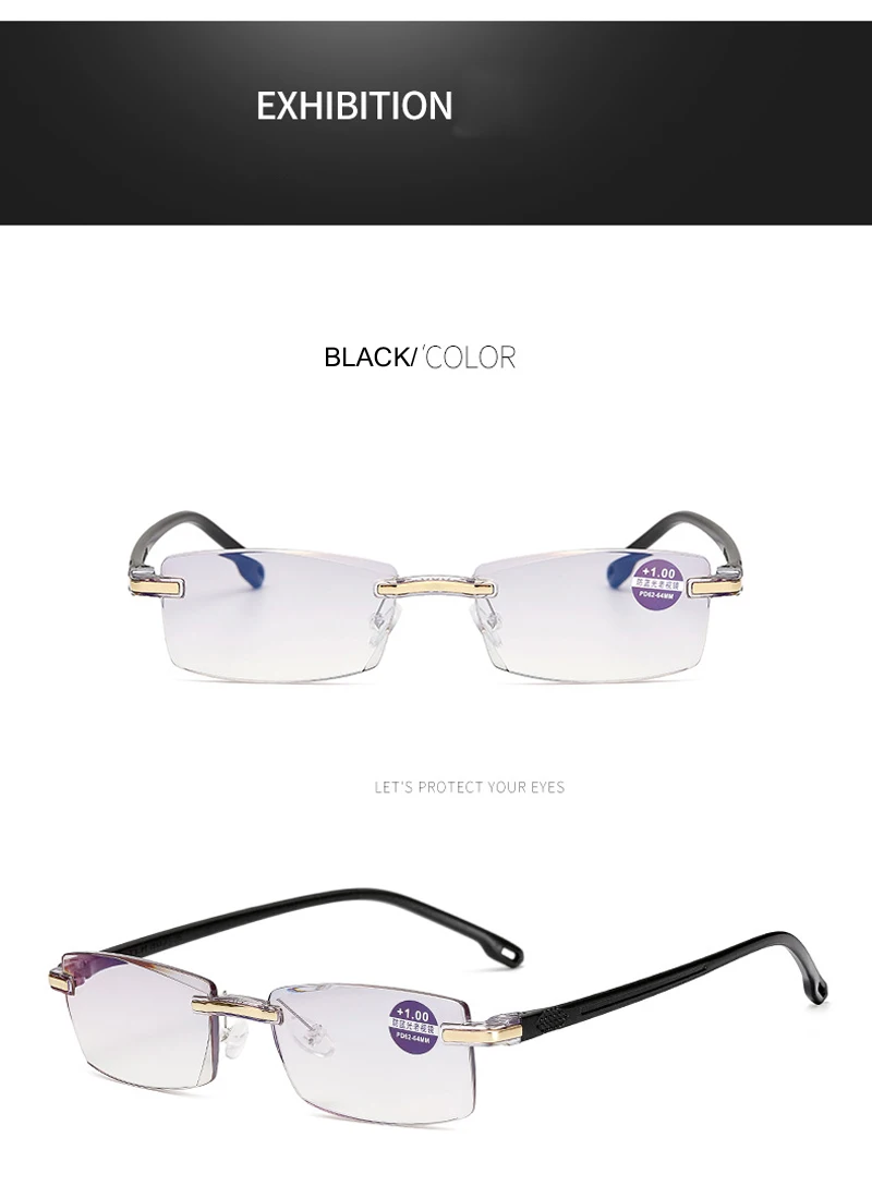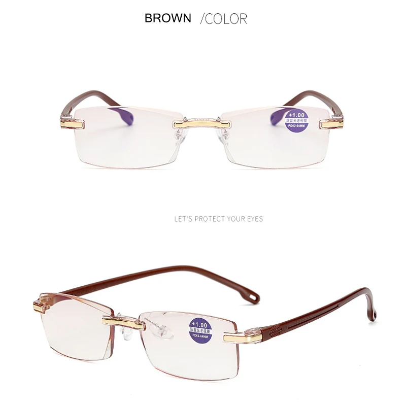 Очки для чтения, без оправы, с диоптриями + 100, 150, 200, 250, 300...