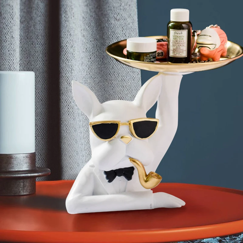 Современное хранилище в виде бульдога с подносом, скульптура в виде животного, пластиковые ключи, корзина для конфет, украшение для дома, гостиной, входа, стола