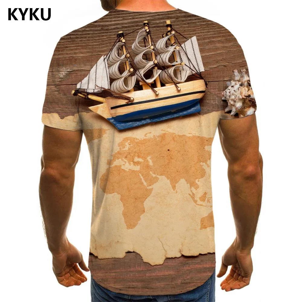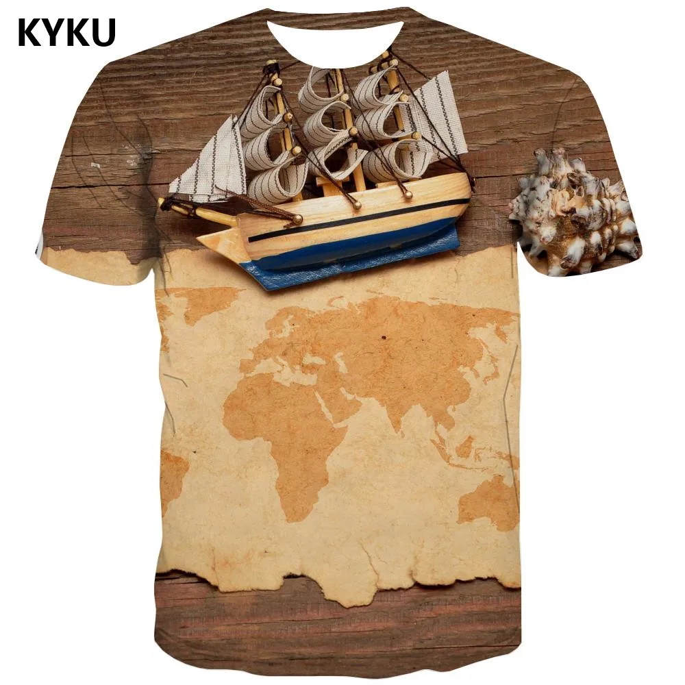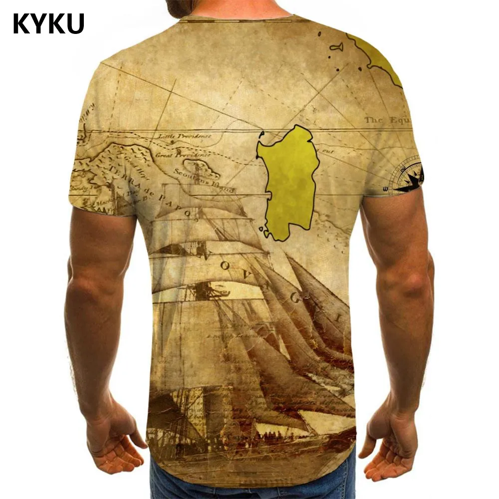Мужская футболка с компасом KYKU, летняя повседневная футболка с принтом карты, лето 2019