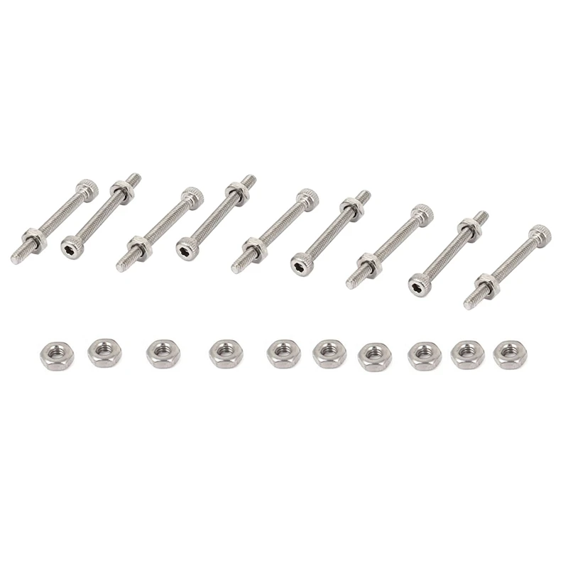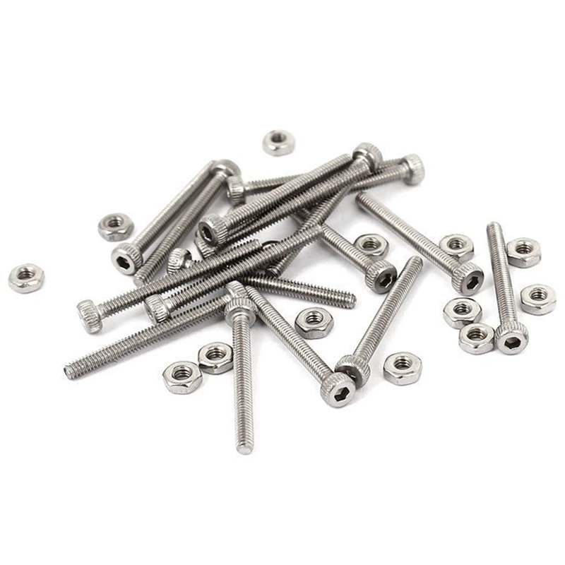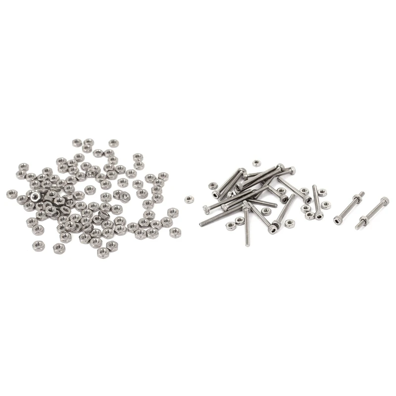 100 шт. метрические шестигранные гайки M2 304, крепеж из нержавеющей стали DIN934 для болтов и 20 шт. длинных шестигранных болтов M2 x 20 мм