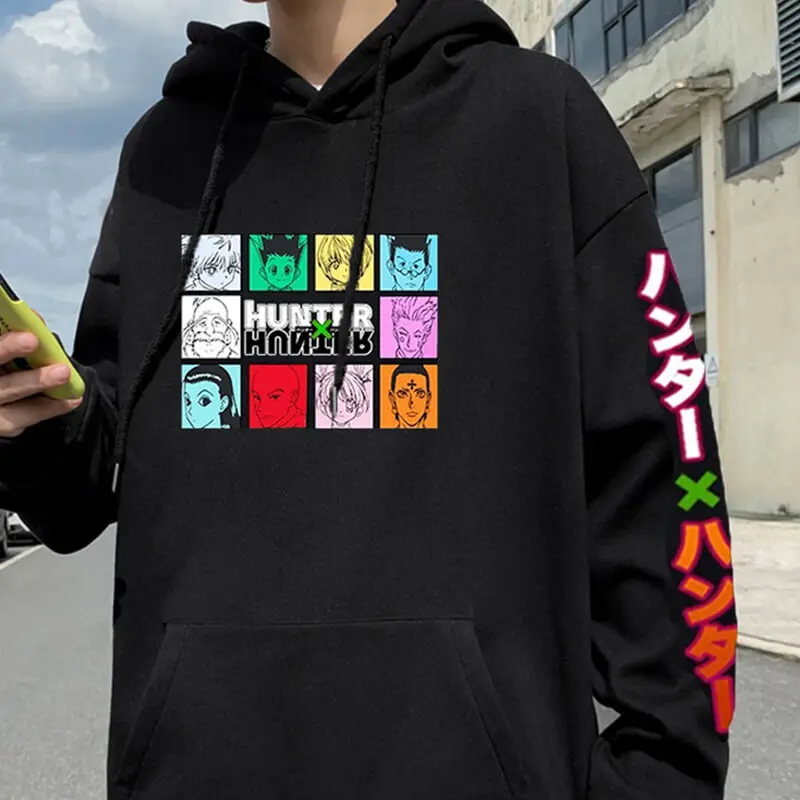 Толстовка с капюшоном в стиле аниме Hunter X Hunter Killua Leorio Kurapika Gon Hisoka, пуловер с длинными рукавами, флисовая уличная одежда с капюшоном, топы унисекс