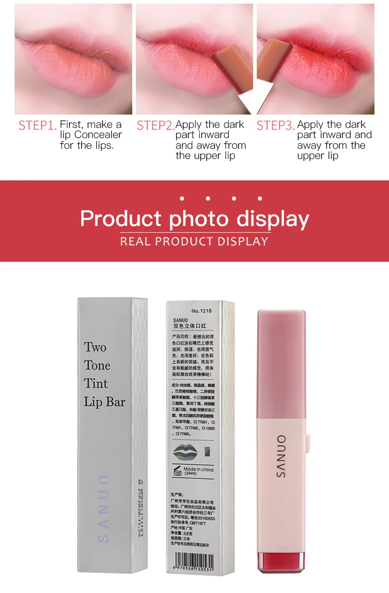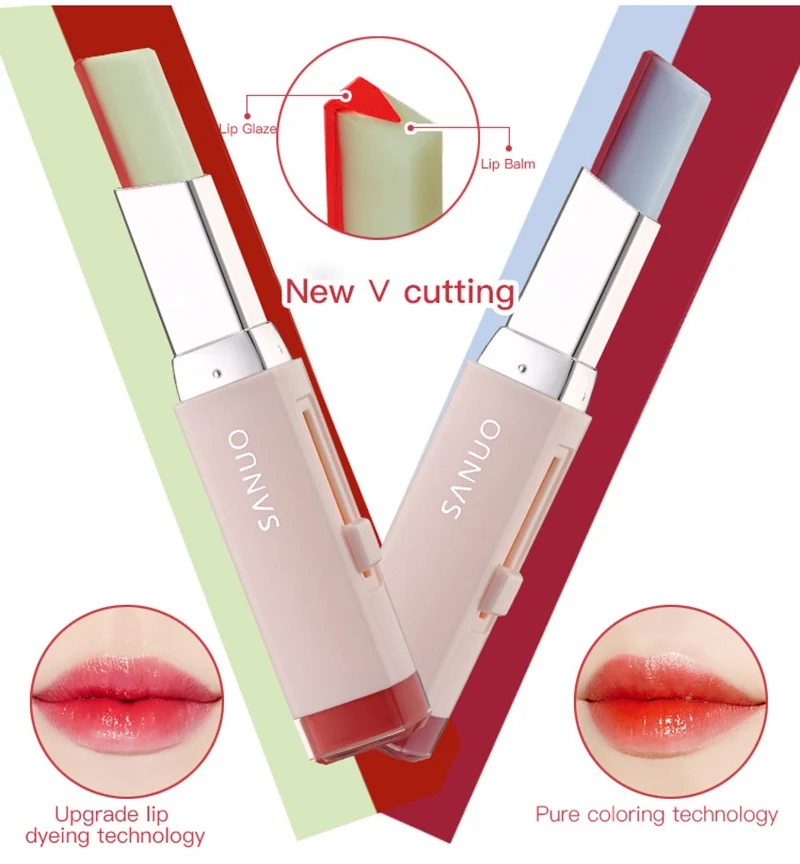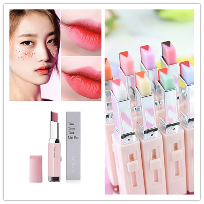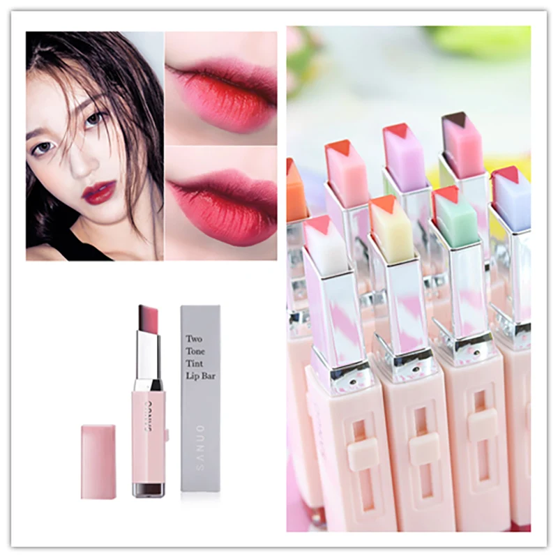 Трехмерная двухцветная V-образная помада, градиентная помада, ранний макияж, Студенческая помада, блеск для губ, макияж губ TSLM1