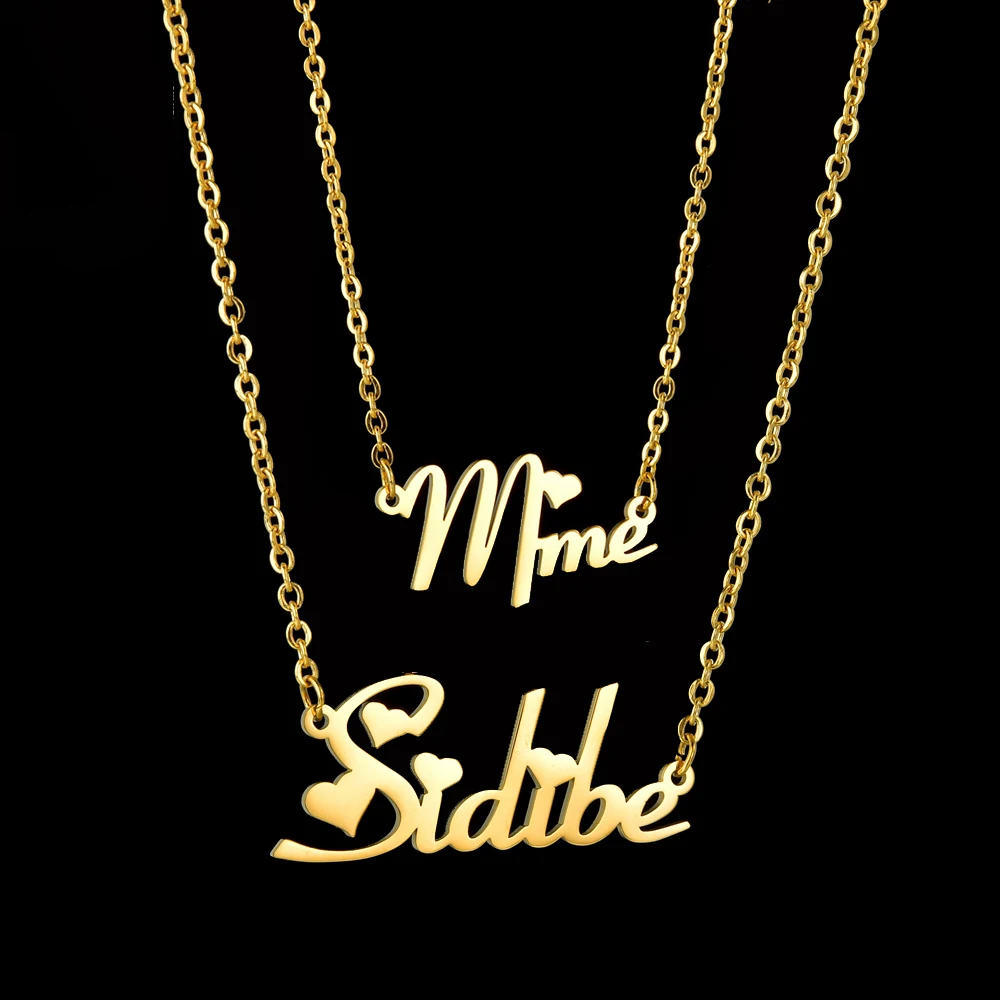 Ожерелье Atoztide с надписью на заказ, чокер из нержавеющей стали с золотистыми двухслойными именами, цепочка с подвеской, ювелирные изделия для женщин, подарок