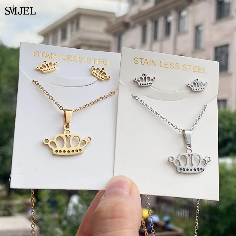 Изысканный чокер в виде короны с мультяшным дизайном, простые Подвесные серьги, ожерелье, ювелирные изделия для помолвки для женщин и детей