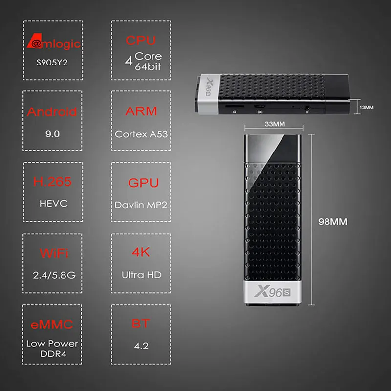 Смарт ТВ-флешка X96S, Android 9,0, X96S, DDR3, 4 Гб, 32 ГБ, четырех...