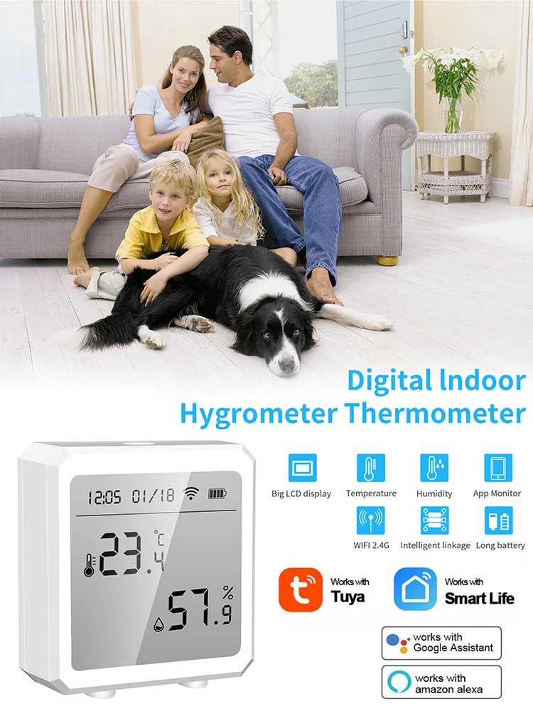 Tuya умный WIFI датчик температуры и влажности DisplayHygrometer термометр детектор работает с Alexa Google домашний помощник