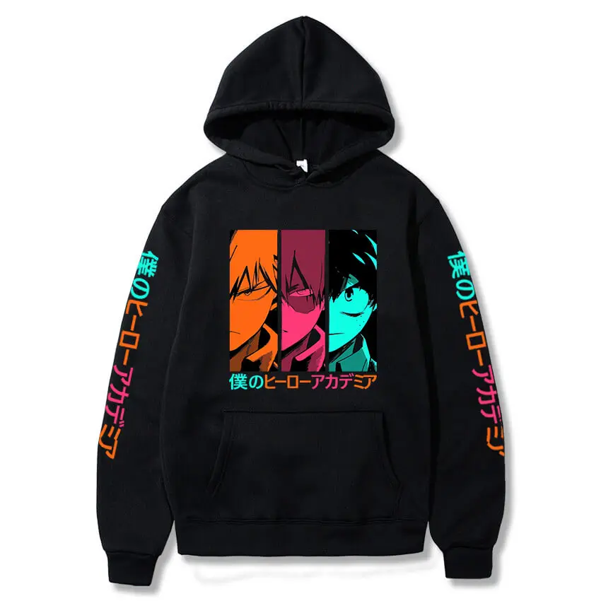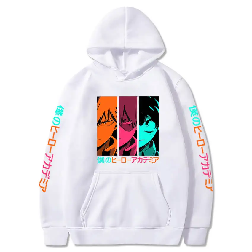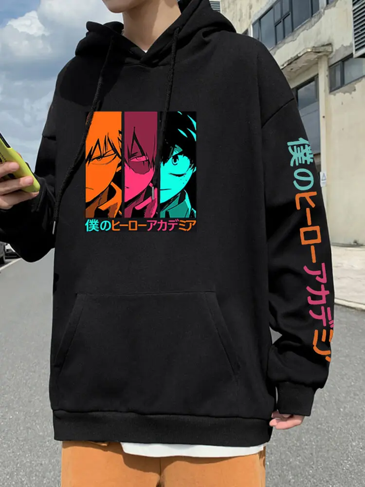 Толстовка с капюшоном в стиле Харадзюку с принтом из аниме Моя геройская академия, повседневный пуловер с капюшоном в стиле боку, пуловер с длинным рукавом в стиле унисекс