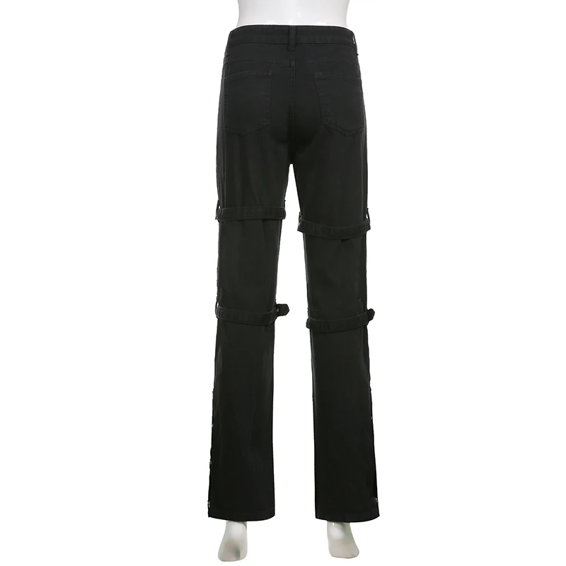 Черные женские джинсы Y2k в стиле панк и готика с застежкой-ушками,...
