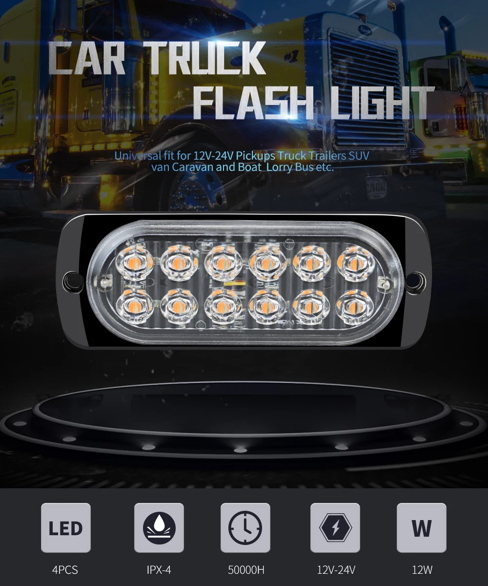 Светодиодные Сигнальные огни, желтые автомобильные лампы, боковые указатели поворота для грузовика, 12 светодиодов
