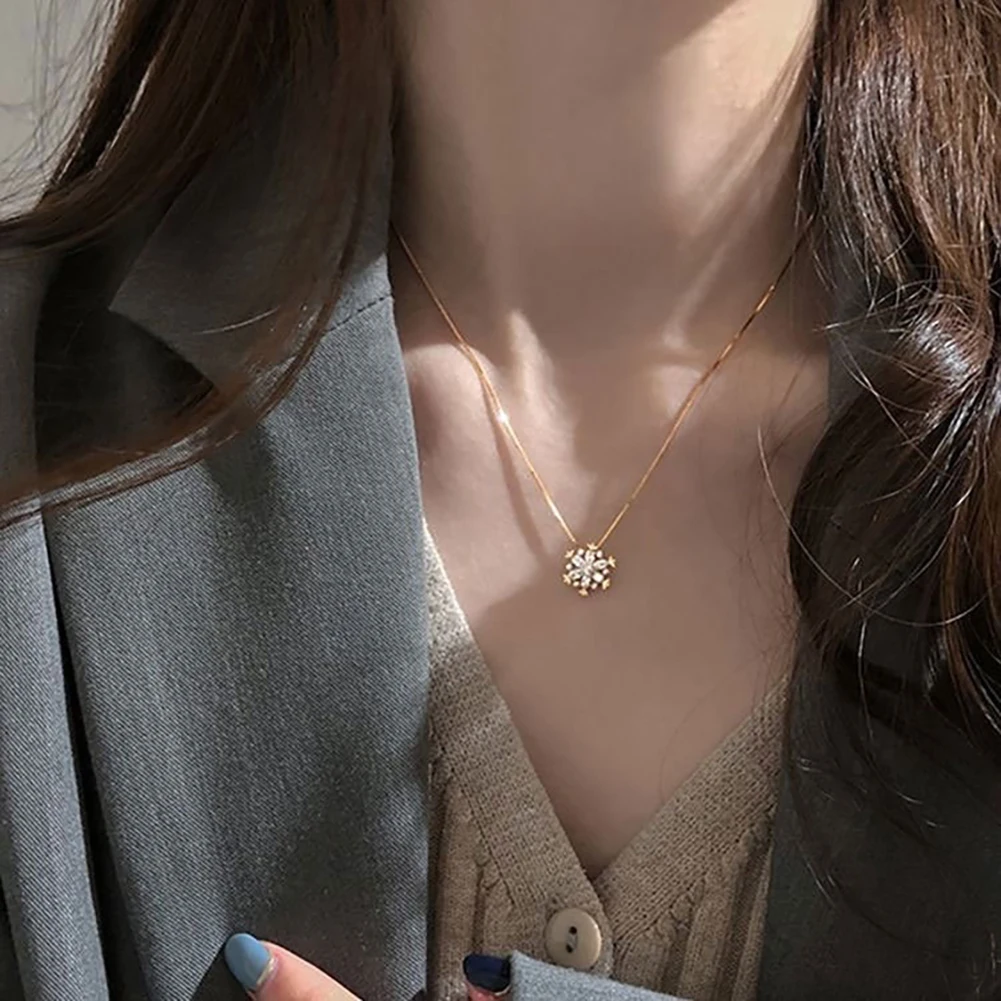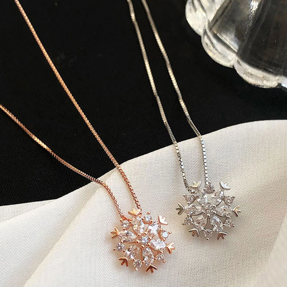 Женское ожерелье с подвеской в виде снежинки с кристаллами