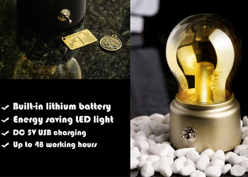 Винтажная лампа, ночник, перезаряжаемый светодиодный энергосберегаю...
