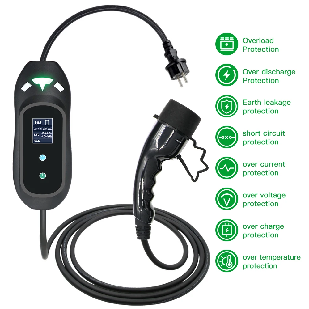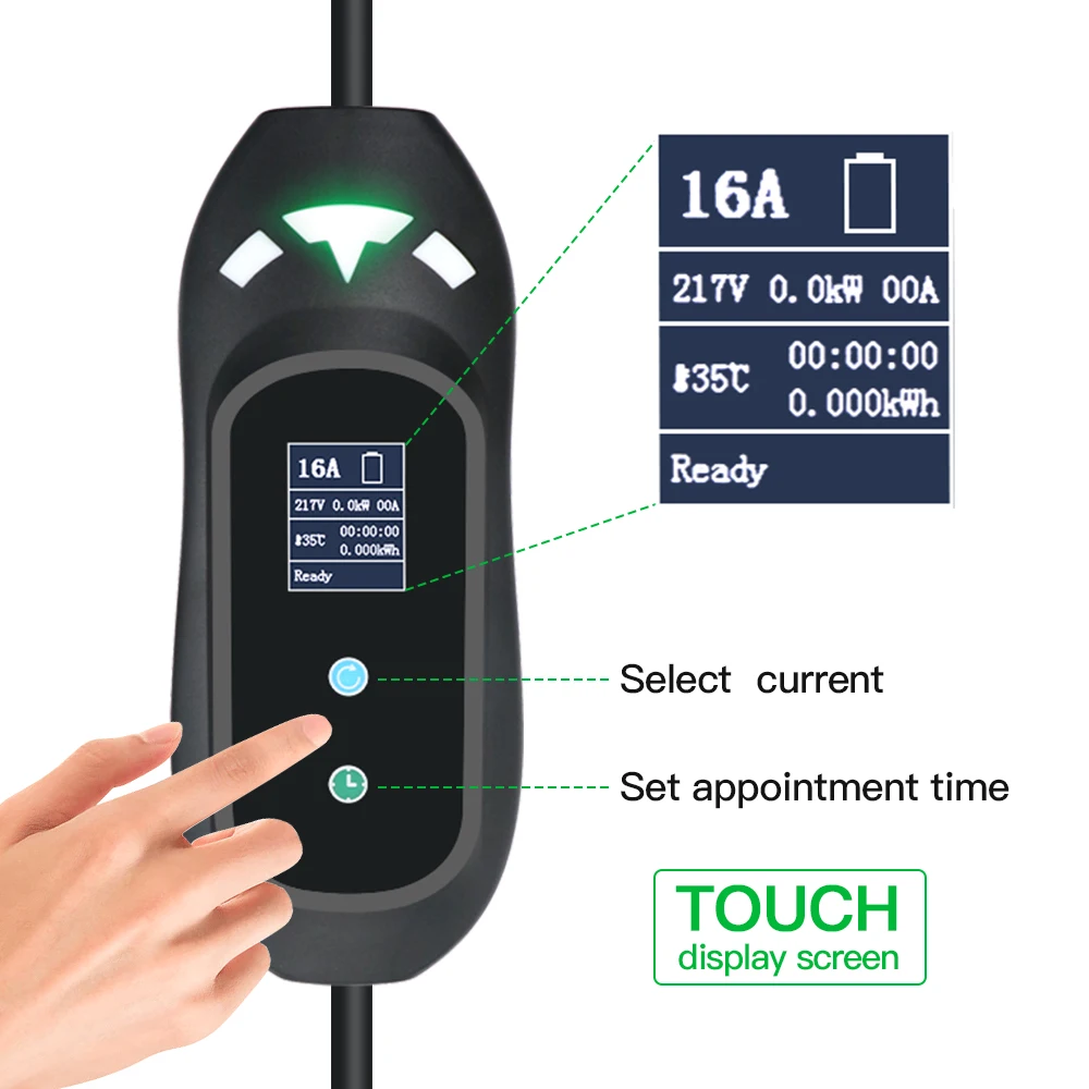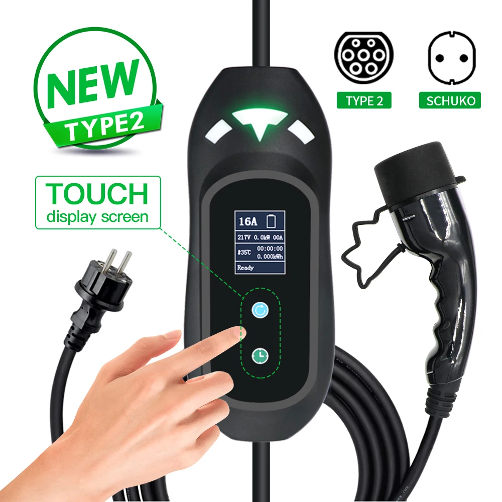 Зарядное устройство для электромобилей, SAE J1772, тип 1, IEC62196, тип 2 EVSE, 16 А, сенсорный экран 3,6 кВт, для домашнего использования