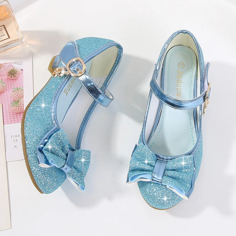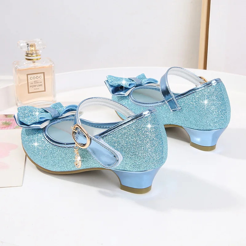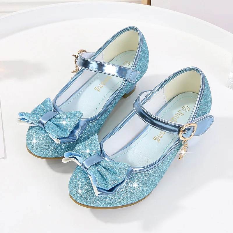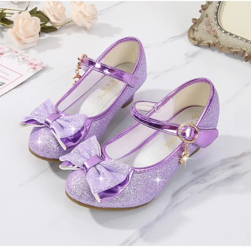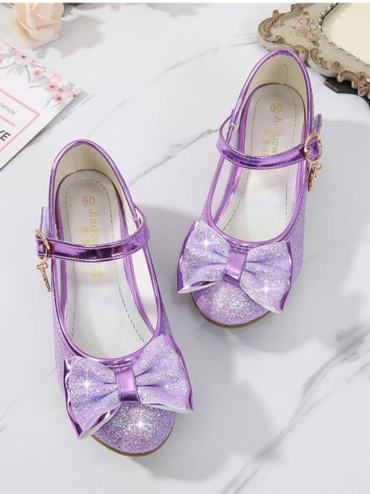 Туфли принцессы для девочек, блестящие кожаные туфли на высоком каблуке с бантом-бабочкой, детская обувь для танцев на свадьбу, вечеринку, 2021