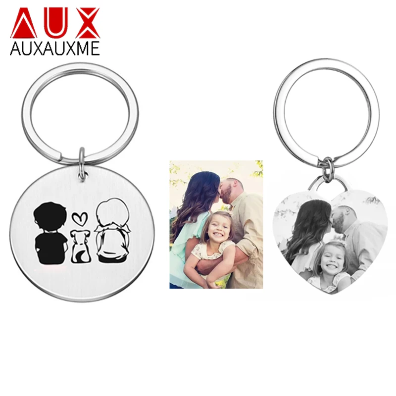 Auxauxme пользовательские Семейные фото названия даты брелки из нержавеющей стали Выгравированные персонализированные Logol Рисование день рождения ювелирные изделия подарки